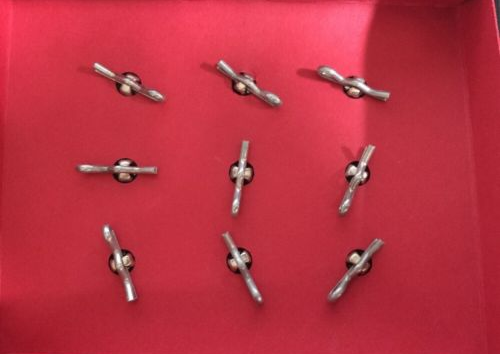 One set of 9 Revolutionary War replica buttons. The larger ones measure approx. 7/8″ across and the smaller ones measure approx. 5/8″ across. These are great for the collector/enthusiast or reenactment uniforms. Excellent condition, never used.